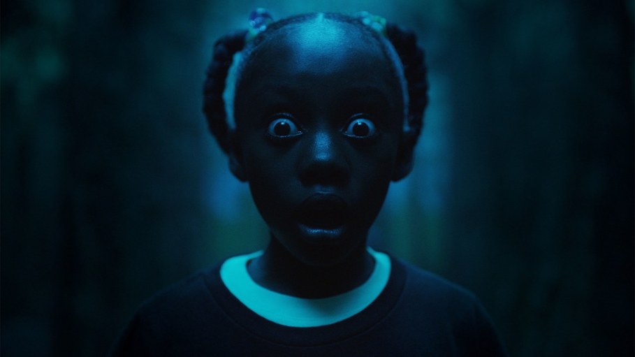 Us opens in 1986 with a little girl named Adelaide (Madison Curry) who one night wanders into a funhouse at a beach in Santa Cruz and comes face to face with a girl that looks exactly like her. The experience traumatizes her. Thirty-three years later we see Adelaide (Lupita Nyong’o), now a wife and mother, vacationing with her family at their lake house near Santa Cruz. Her husband Gabe Wilson (Winston Duke) can’t understand why she doesn’t want to hang out by the ocean. She seems anxious and overprotective of daughter Zora (Shahadi Wright Joseph) and son Jason (Evan Alex). And as the memories of her encounter bubble up to the surface, four menacing silhouettes appear in the driveway. They force their way in. They terrorize the Wilsons. And they look… exactly like them. The leader of this creepy gand of doppelgängers? Her now-grown childhood counterpart.