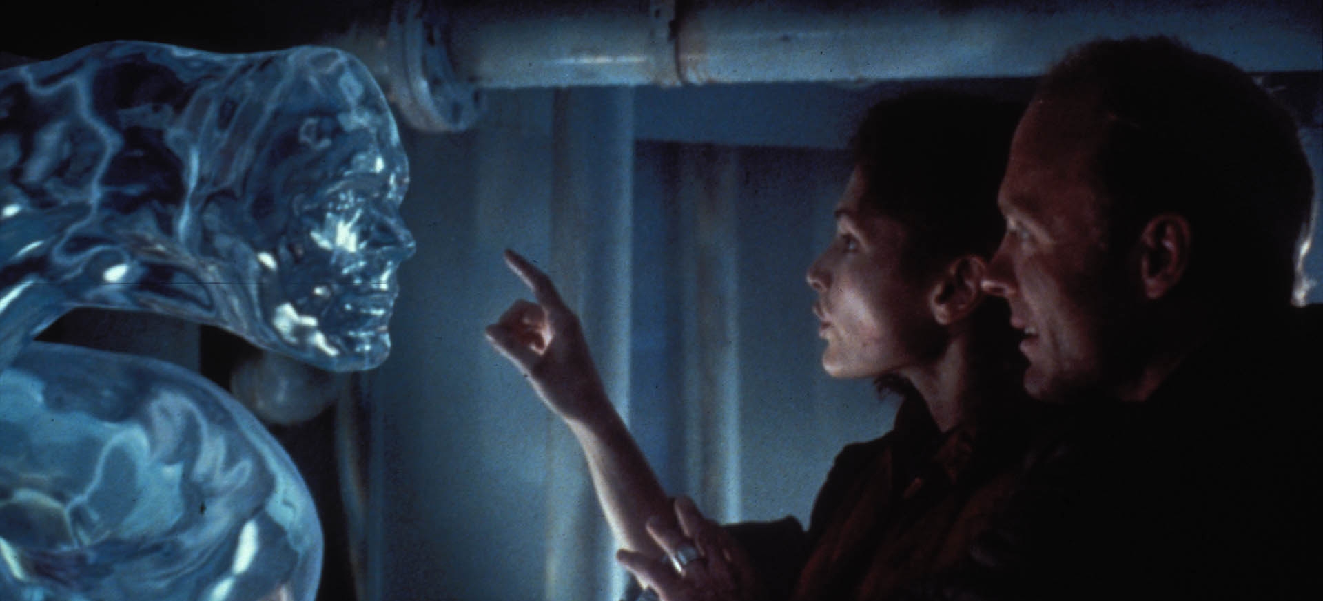 The Abyss is really two movies. One is an underwater action thriller in which a group of oil platform workers is recruited by a SEAL team to recover a lost nuclear sub. The other is a sci-fi spectacle about aliens hiding deep beneath the ocean surface. The first works very well, with some tension-filled sequences that rank among writer/director James Cameron’s best work (the scene in which the rig’s designer [Mary Elizabeth Mastrantonio] drowns on purpose so she can get revived later is a doozy). But the second doesn’t quite gel with the first, arriving at a hokey climax in which the extraterrestrials learn about humanity. Ugh. Still, The Abyss is Cameron’s final solid effort before succumbing to the even cheesier Titanic (1997) and Avatar (2009).